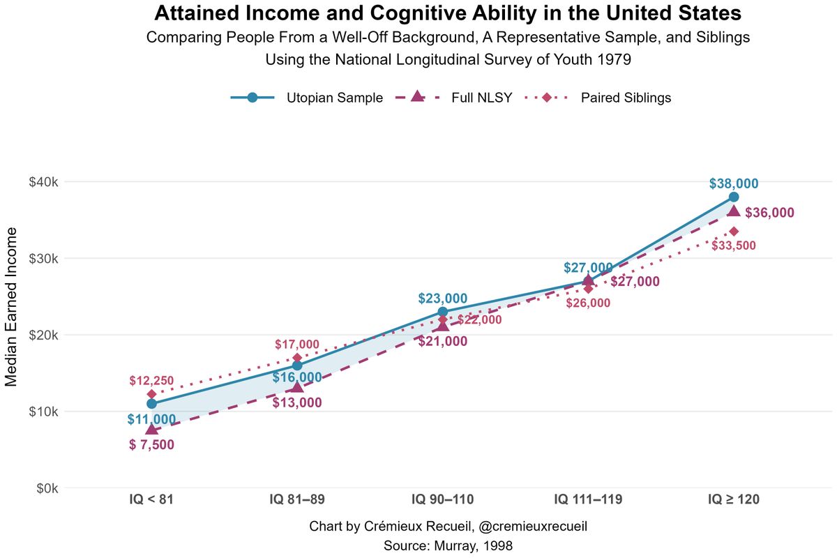 This holds for people from excellent family backgrounds (Utopian Sample) and comparing siblings from the same families!