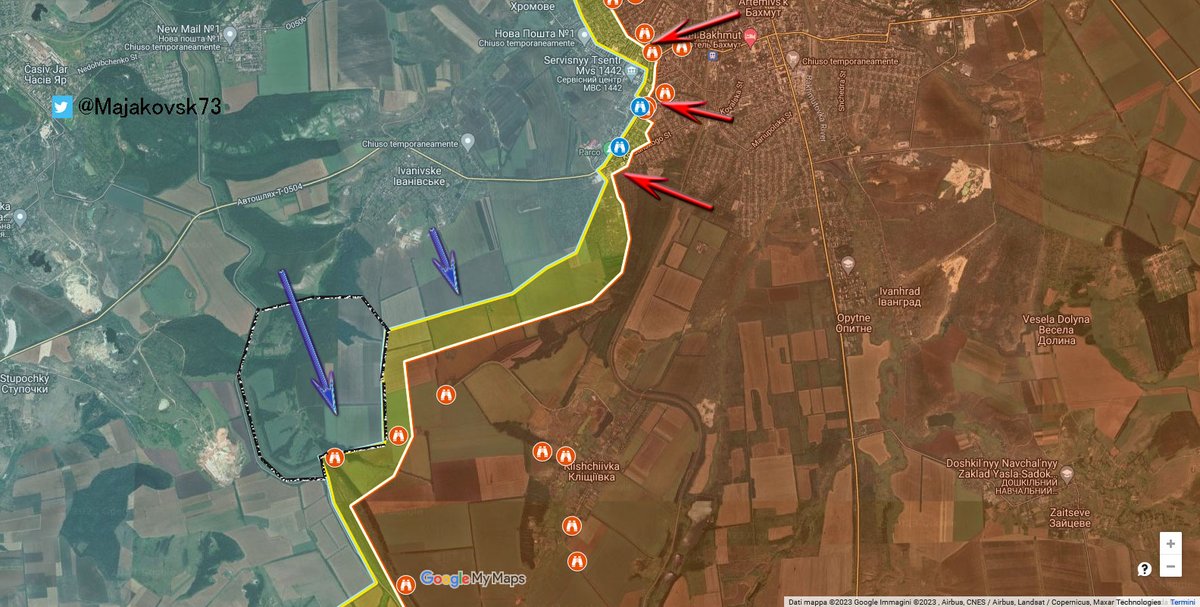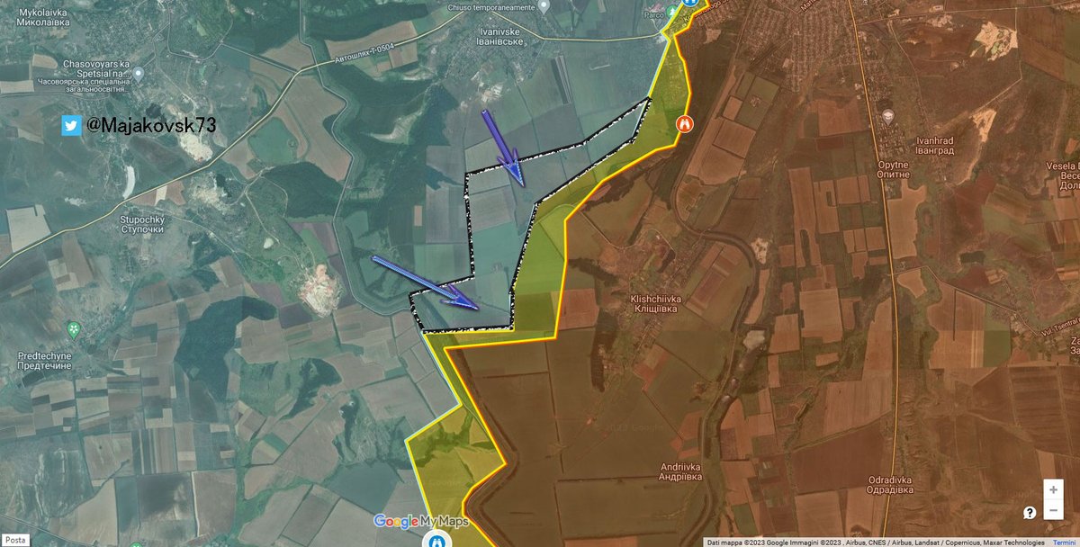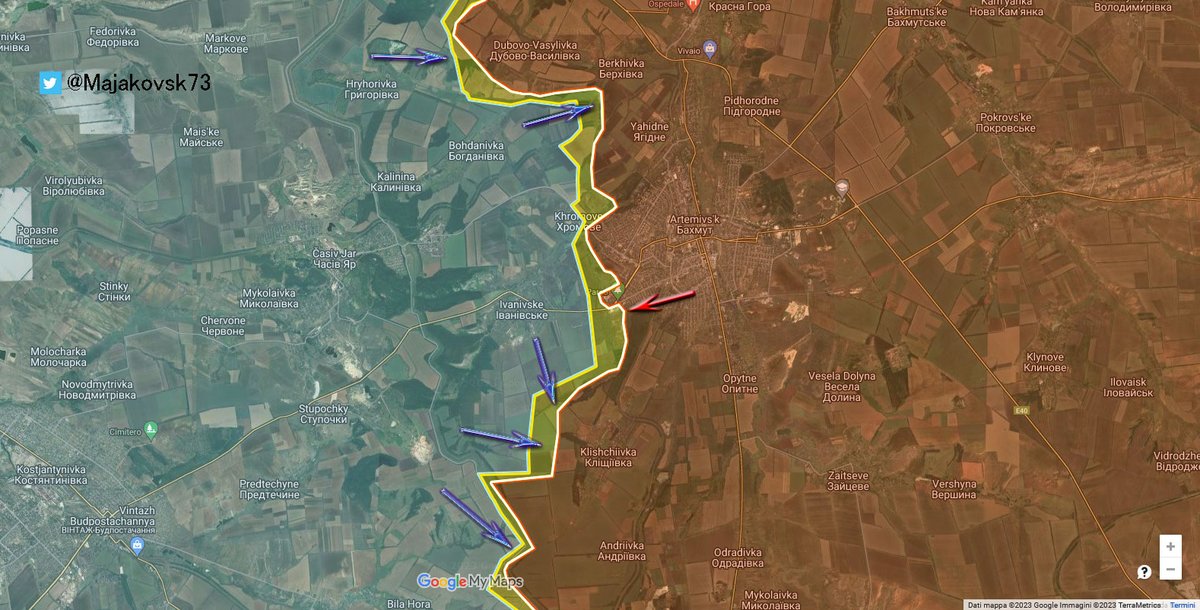 2\#Ucraina A sud di Bakhmut invece avanzata ucraina, che si avvicina a Klishivkha per stessa ammissione Wagner