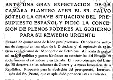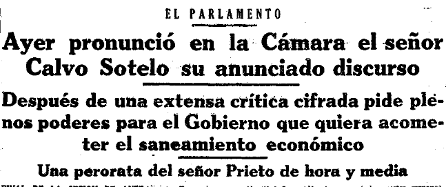 Ocurría un mes de Mayo de 1934. El día 18, tras 3 años de exilio, José Calvo Sotelo protagonizaba su 1ª intervención en el Parlamento de la II República.