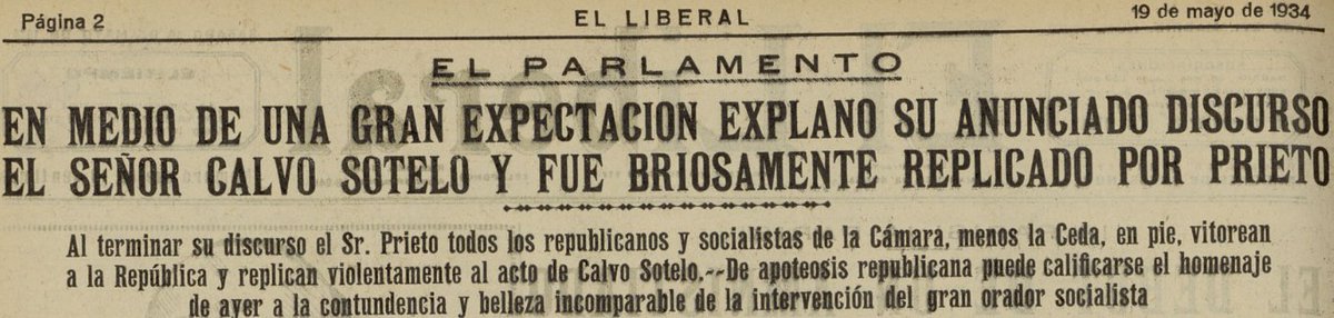 En efecto, hasta aquel 18 de Mayo de 1934, y tras 3 años de República, nadie se había atrevido a censurar y denunciar con esa firmeza, los excesos y fracasos de la II República..👇