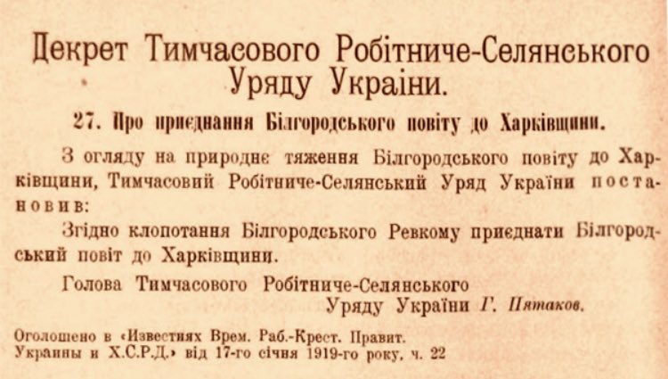 Bilhorod (the real name of Belgorod ) was a Ukrainian city once - up until russian Bolsheviks army entered it in 1918 and in 1919 made it part of russia