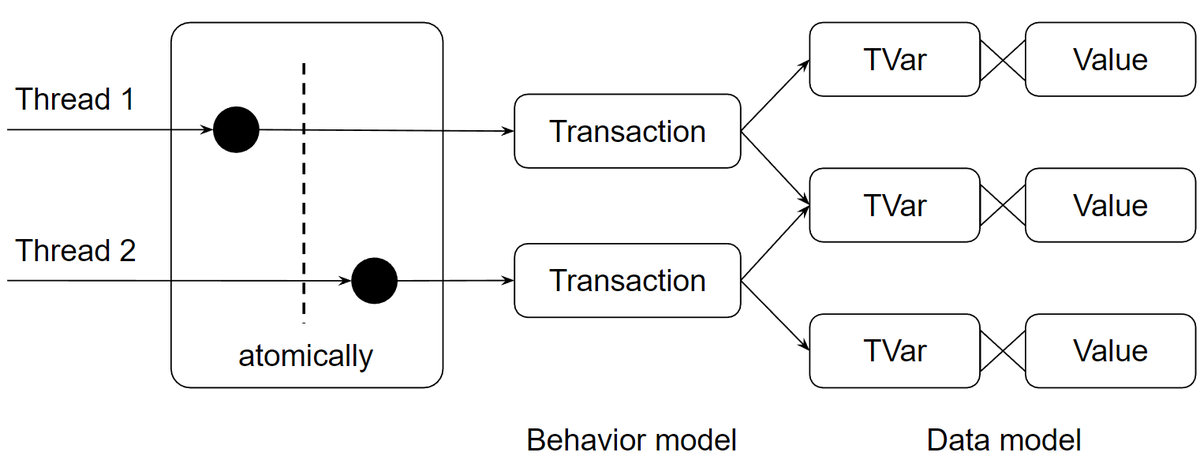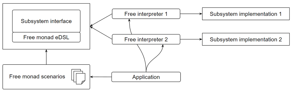 The idea of interpretable Free monadic eDSLs helped me to implement this concurrency model in a really simple way compared to the mature STM libraries.