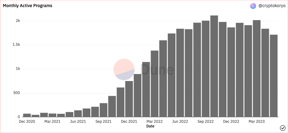 Number of active "Solana programs" still strong. No signs of decline for now.