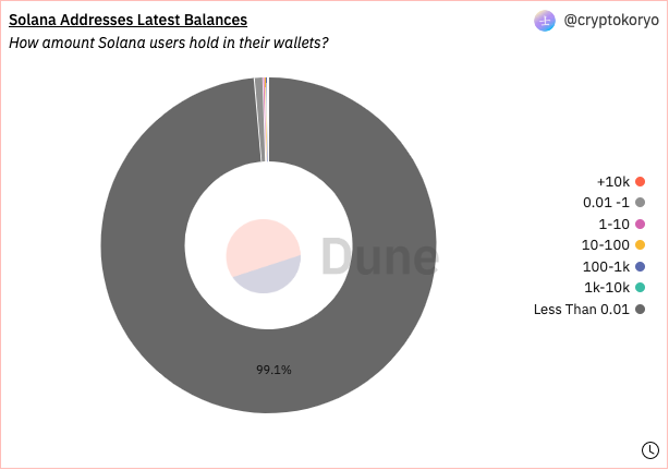 Surprisingly, it looks like 99% of Solana wallets hold less than 0.01 Solana.