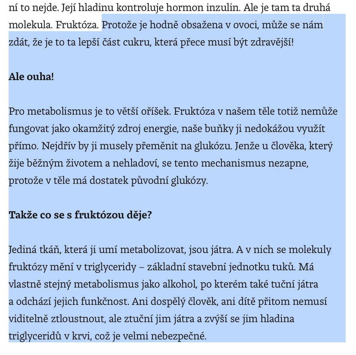 Srovnavat fruktozu s alkoholem (!) je taky v tomhle kontextu mimo.
