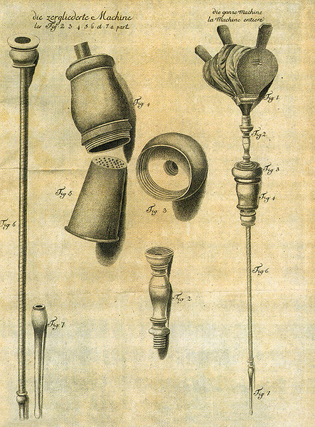 6/11 Ve své nejzákladnější formě se kouřové klystýry s tabákovým kouřem opravdu neaplikovaly vždy s pomocí foukacího měchýře. Původně byl totiž kouř foukán do řitního otvoru pacienta pomocí čehokoli, co bylo po ruce, například pomocí zmíněné dýmky.