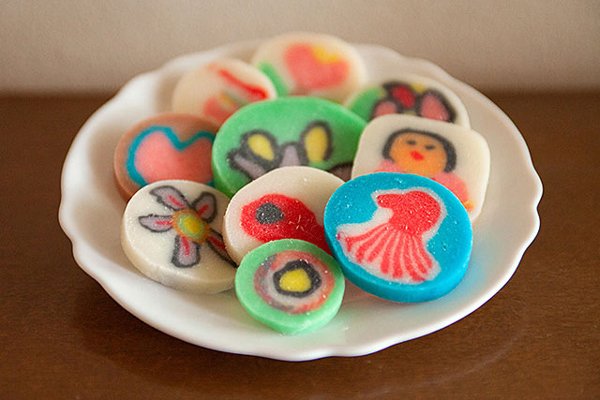 もち米と粳米を混ぜて作り、模様を施した後金太郎飴のように切って蒸す料理だ。