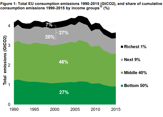 Das Bild dieser Klimaungleichheit bildet sich auch in der EU ab: Allein die obersten 10 % der Bevölkerung sind für 27 % des CO2-Fußabdrucks verantwortlich. Die obersten 10% brauchen damit so viel wie die gesamte untere Hälfte. (Gore/Alestig 2020).