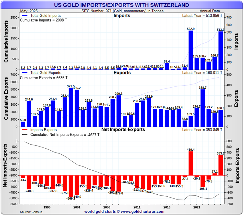 📊 For decades, the US exported more gold to 🇨🇭 Switzerland (global refining hub) than it imported. Logical — 🇺🇸 is the 5th largest gold producer. But since Trump’s return, that surplus flipped to a deficit.