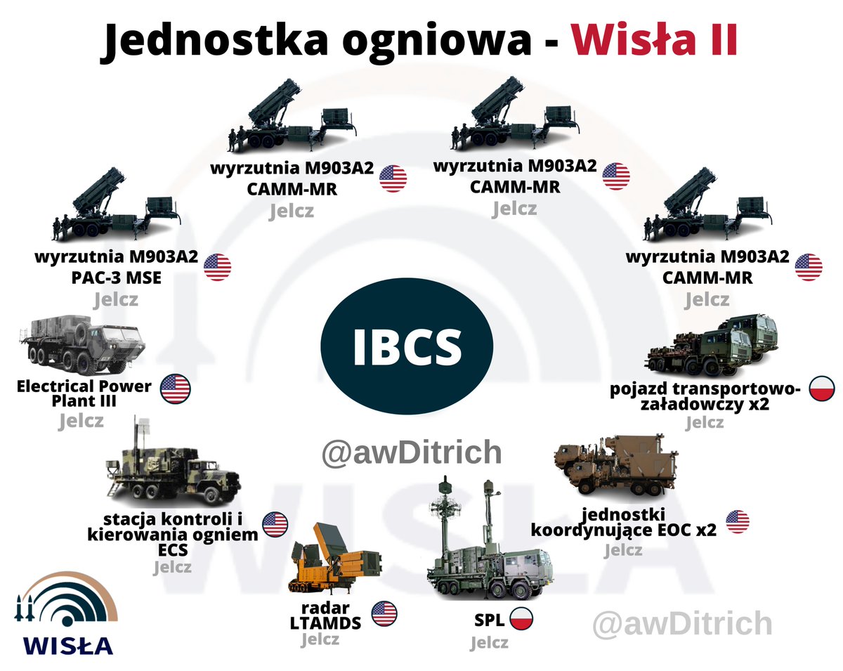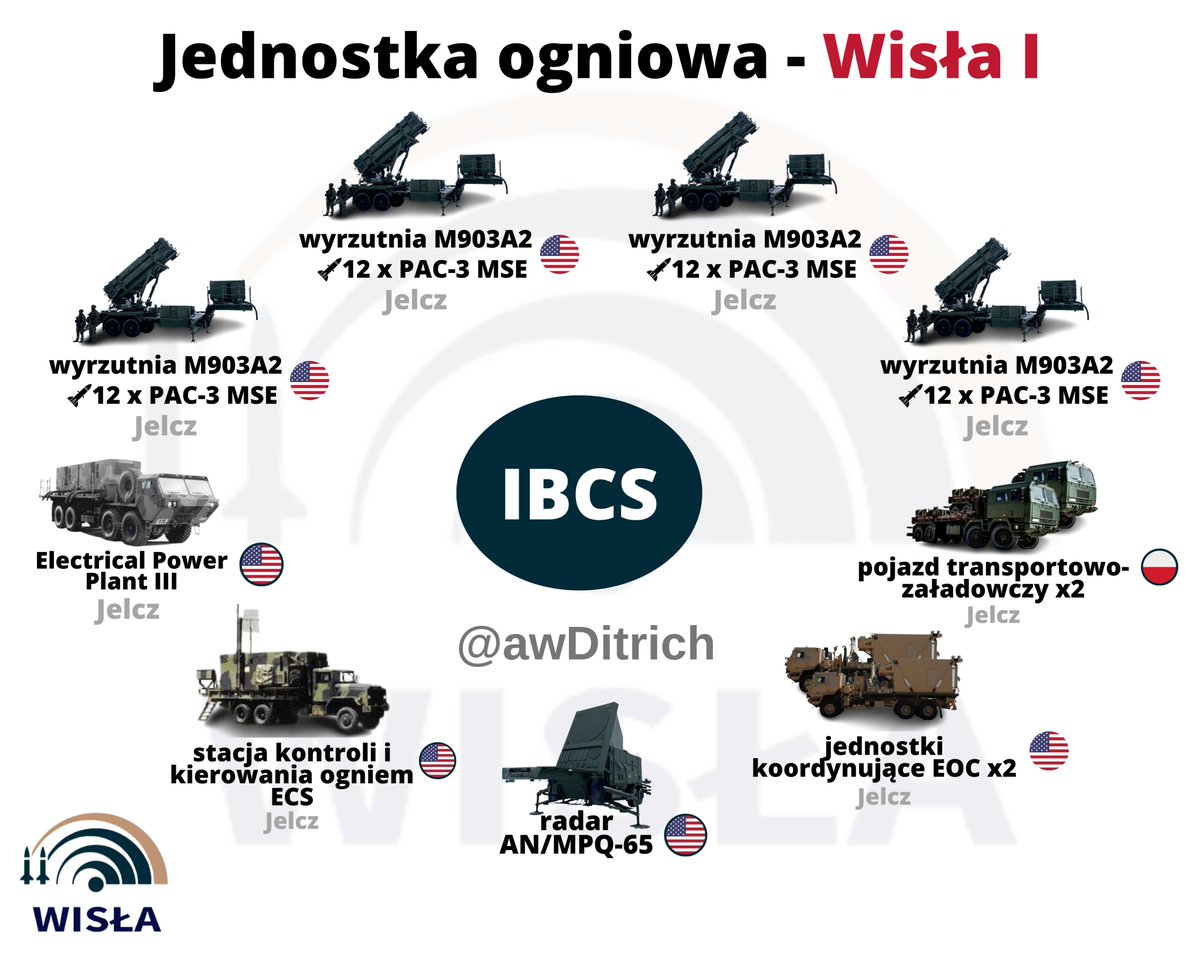Sam program z uwagi na swoją wielkość został podzielony na dwie części. W ramach Wisły I zakupiliśmy w 2018 r. dwie baterie (czyli 4 JO). W każdej JO: 4x wyrzutnia M903, radar sektorowy AN/MPQ-65 oraz dowodzenie i wszelka logistyka. Patrz grafika niżej. 6/n