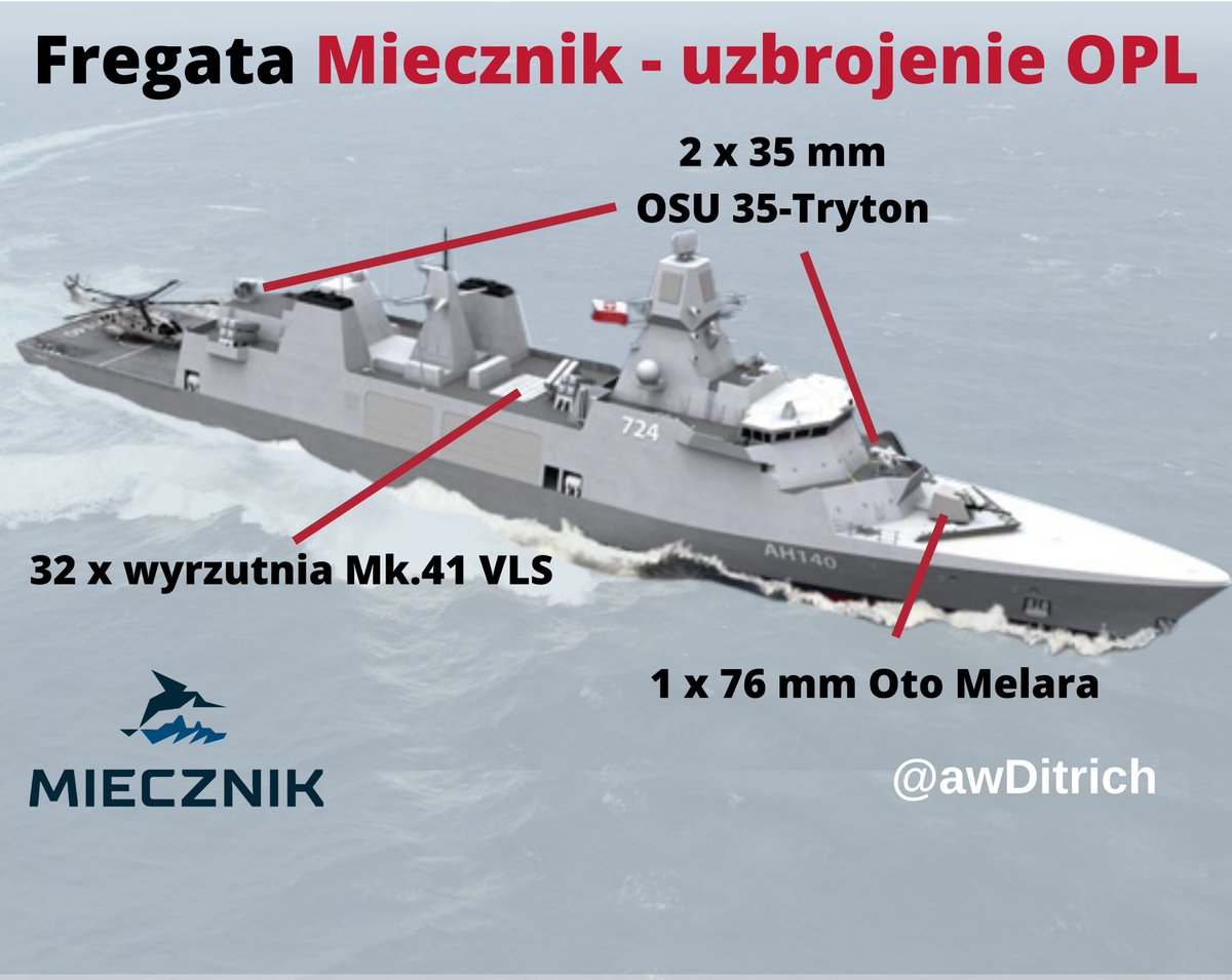 Ważniejsze jest jednak to, że na okręcie może znaleźć się do 32 pionowych wyrzutni Mk. 41. Miecznik ma bowiem dysponować całą rodziną pocisków CAMM (CAMM, CAMM-ER, CAMM-MR). Oznacza to, że sam będzie posiadać wielowarstwową OPL. 20/n