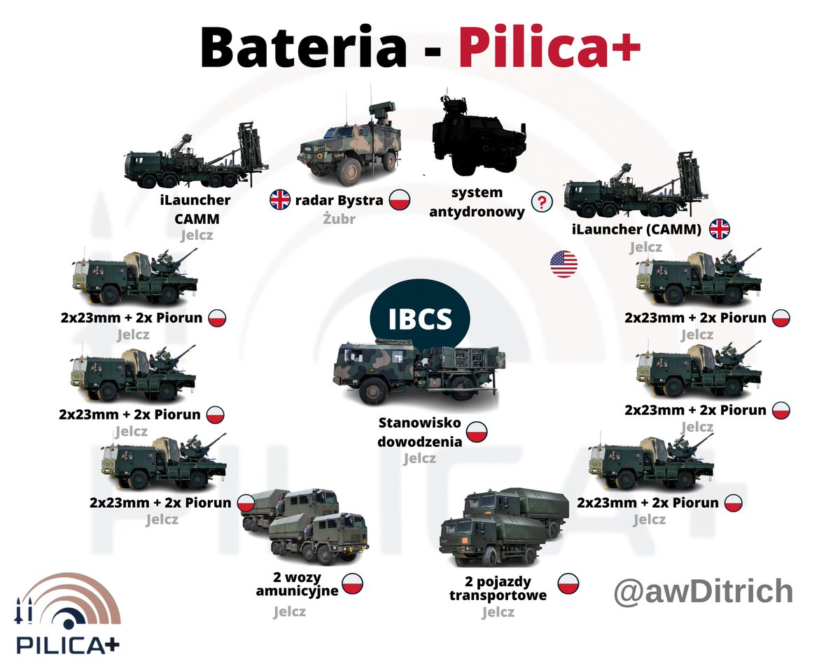 W 2022 roku program rozwinięto do standardu Pilica+. Poza działkami i piorunami pojawią się dwa nowe efektory. Po pierwsze będą to wyrzutnie iLauncher z rakietami CAMM. To najdroższy element (~10 mld PLN). Na każdą baterię przypadać mają dwie wyrzutnie po 8 pocisków. 24/n