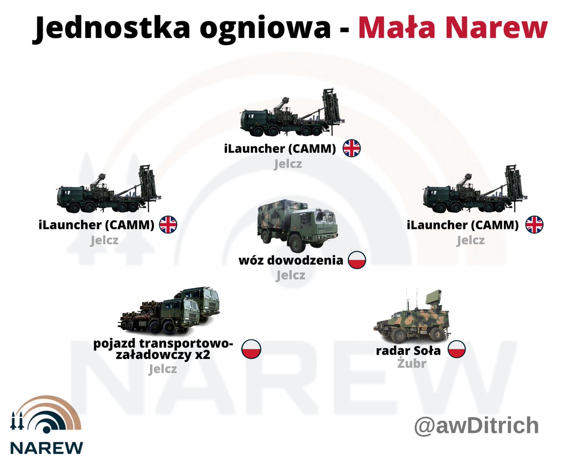 Każda bateria będzie składać się z dwóch takich JO. Docelowo zamówimy 23 baterie Narwi (przy założeniu 3 wyrzutni w JO da to ponad 1000 rakiet CAMM-ER. Dużą zaletą tych pocisków jest tzw. zimny start. Dzięki temu będzie można używać wyrzutni w terenie zurbanizowanym. 31/n