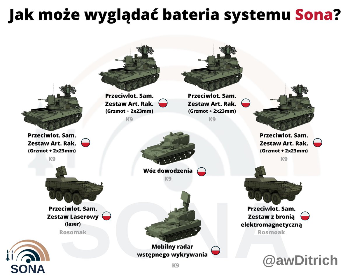 Następnym systemem chroniącym Wojska Lądowe jest Sona. Obecnie nie znamy szczegółów. Wiemy, że wojsko chce systemu, który osłoni wojska zmechanizowane i pancerne (również w pierwszej linii) oraz ważne obiekty. To z kolei sugeruje już konkretne zdolności. 39/n