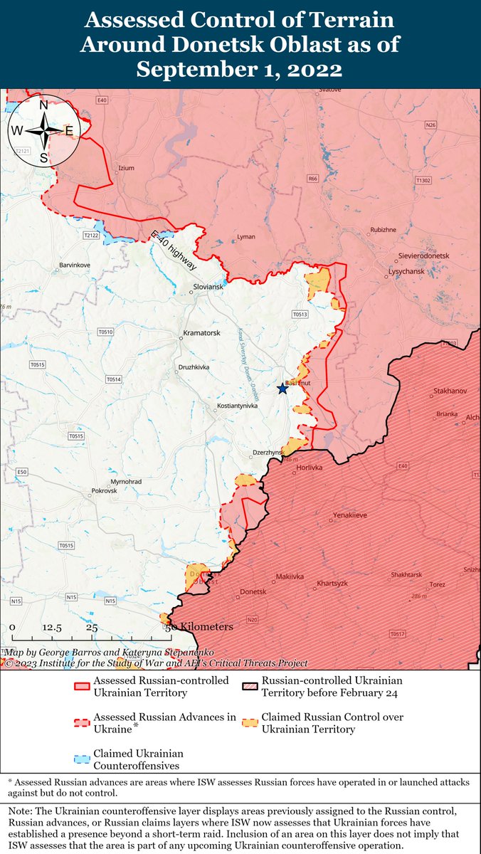 The Ukrainian liberation of most of Kharkiv Oblast in September 2022 ended the immediate Russian threats to Slovyansk and, secondarily, Kramatorsk, whereupon Bakhmut became the main operational and political objective for the Kremlin.
