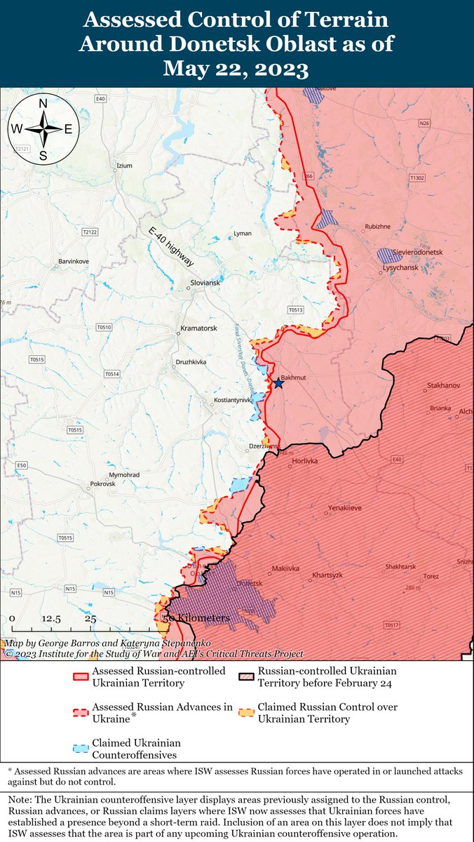 These officials’ statements indicate that Ukrainian forces withdrew from the remaining areas in Bakhmut except those adjacent to the two highways into the city.