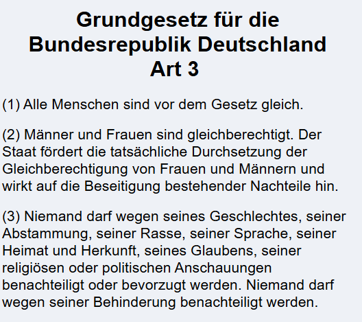 Die Bundesregierung müsste laut GG also alles aus dem Weg räumen, was der Gleichberechtigung im Weg steht.