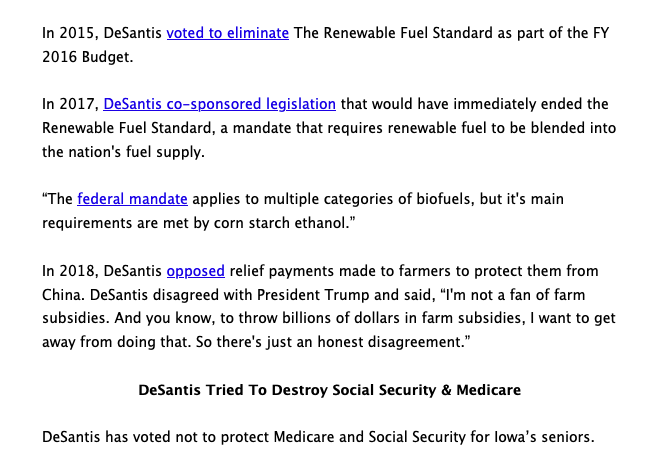 More hits from the left. Trump attacks DeSantis for opposing the ethanol mandate & grants to U.S. farmers "to protect them from China"