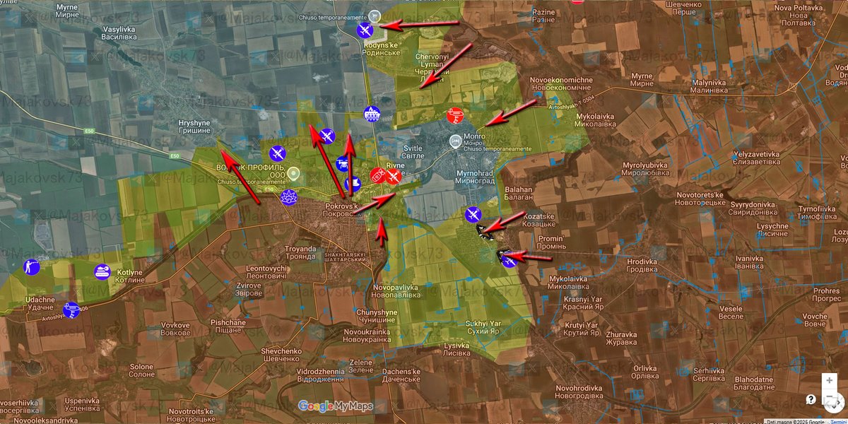 1\#Ucraina Fronte di Pokrovsk: russi continuano a consolidare zona sud-est di Mirhorad. Ampliata grey zone a Rodynske