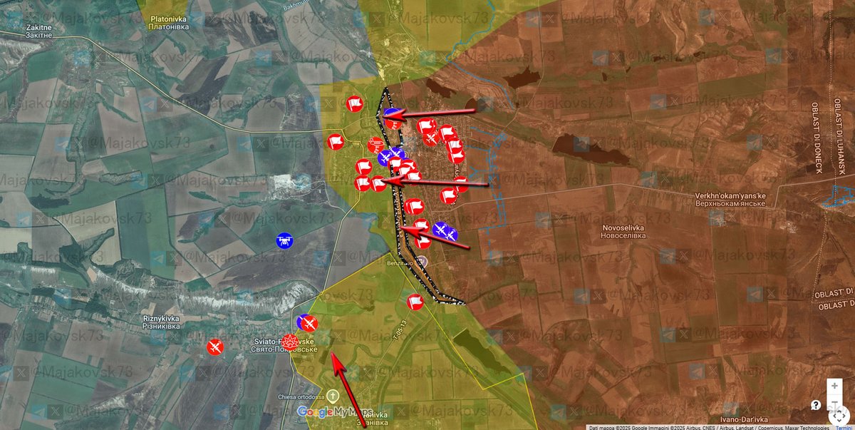 5\#ucraina Fronte di Donetsk: E' il fronte più attivo (possiamo dire l'unico, visti i movimenti minimali). Attacchi russi andati molto male nei giorni scorsi in zona permavoiske, oggi hanno riprovato qui ed a novokalinovo senza successo