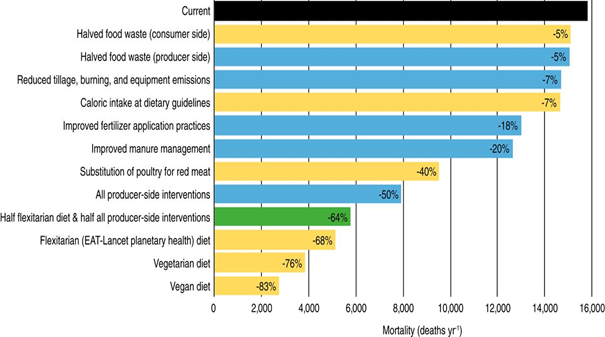 13 Sur la qualité de l’air, les actions les plus efficaces sont de loin celles qui jouent sur la quantité via un changement de régime alimentaire (végétarisme/véganisme)