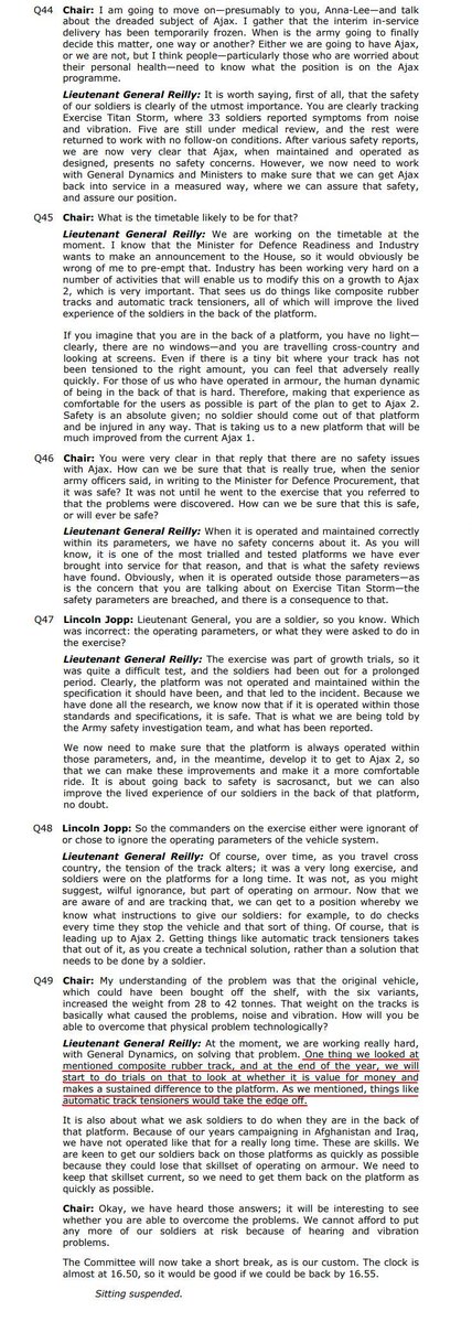 So, this is the entirety of what was said on AJAX yesterday in front of Public Accounts Committee, with Lieutenant General Anna-Lee Reilly CB, Director General, Core Delivery, Defence Equipment & Support.