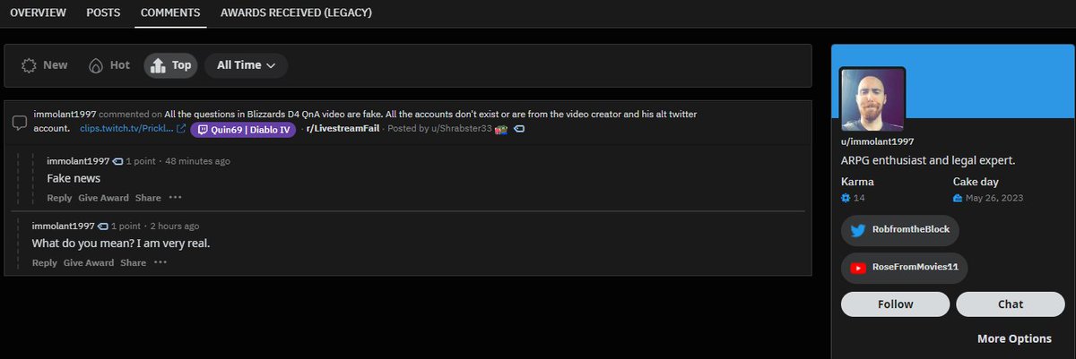Uh oh, looks like that account was literally created TODAY after someone on twitch found out it was made by an account that never existed
