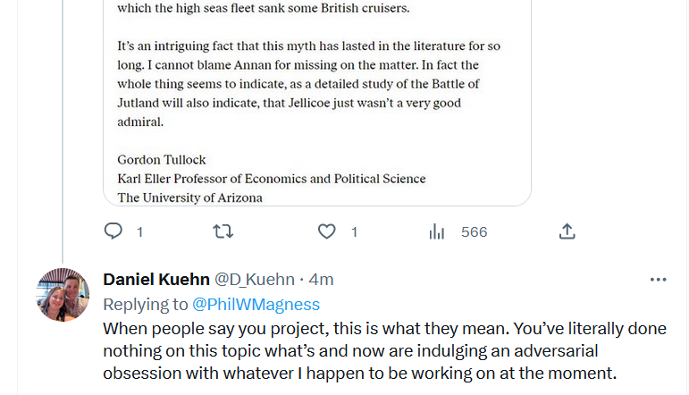 Even stranger: I am easily the object of a large plurality of Kuehn's attention on this site even though he also plays a bizarre ding-dong-ditch game of block/reply/block with my account