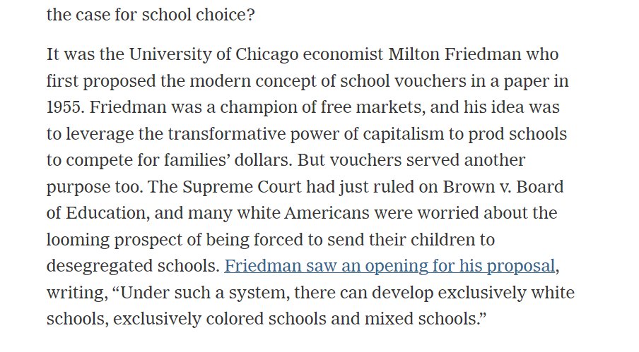 In today's NY Times, @jonathanmahler tries to smear Milton Friedman's 1955 school voucher proposal by invoking an outright fraudulent working paper Nancy MacLean.