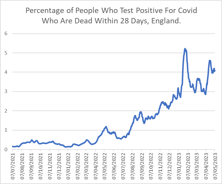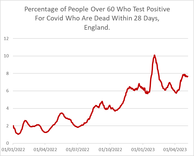 Kind of nuts that we're at the stage where one in thirteen over 60s who test positive for Covid on an official test in England die within the next 28 days.