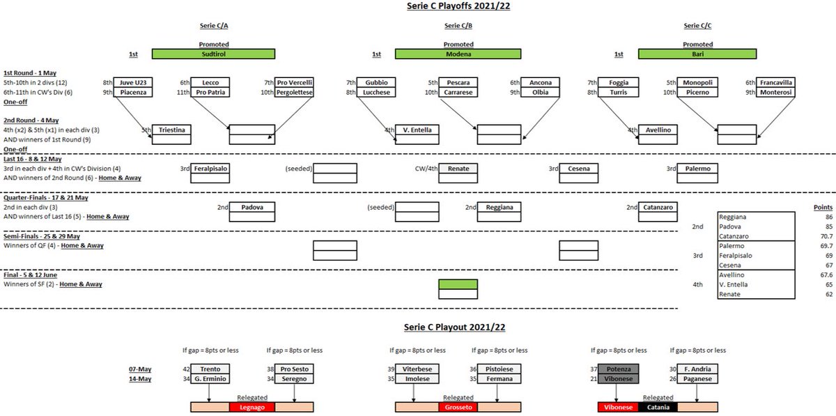 2. Juve Stabia were recently handed a 2-point deduction. If they're successful in their appeal in the coming days, they'll take Picerno's playoff spot away from them.