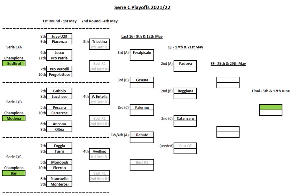 Instead, any free slot in Serie C for a Serie D playofd winner would likely go to Puglian side Nardo, who won today's playoff vs Cavese. But they are also in a race against time stadium-wise, with Pineto, Fano & Casertana waiting in the wings.