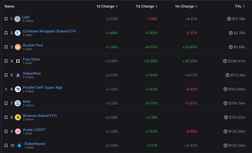 ➡️Who? Here are the top 10 LSD platform per TVL. Popular LSD ETH are: stETH (Lido), rETH (Rocket pool), frxETH (Frax Ether) and SETH2 (StakeWise). LSD are yield bearing tokens