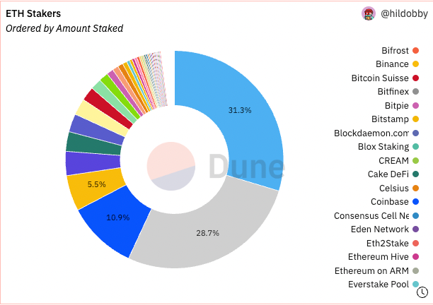 🧵5/23 3⃣Pooled staking: Stake any amount, no need for a computer. Most popular option. Most popular ETH staking platform: Lido, Coinbase, Binance, Kraken, RocketPool, StakeFish.