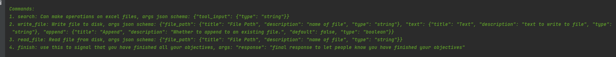 הפקודות בגרסה שלי הן: חיפוש בגוגל, פתיחת קובץ, שמירת קובץ וסיום ההרצה.