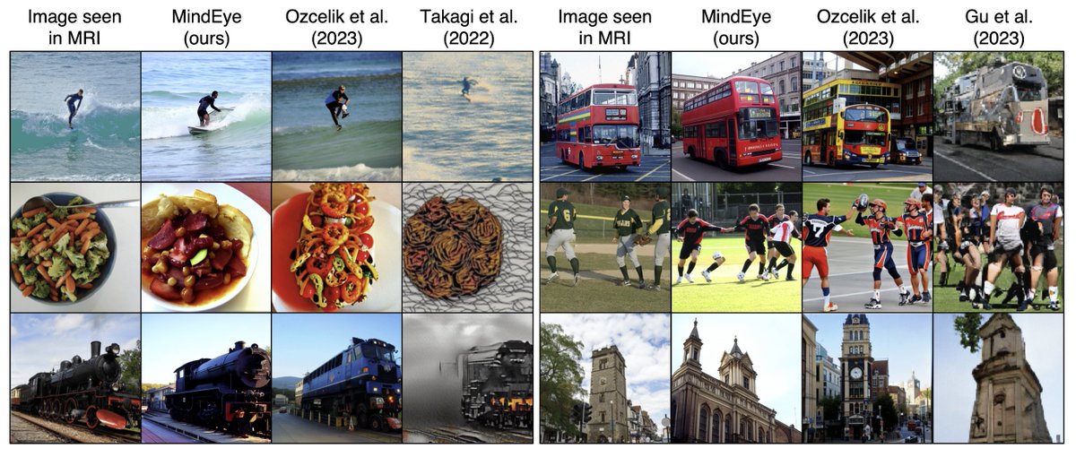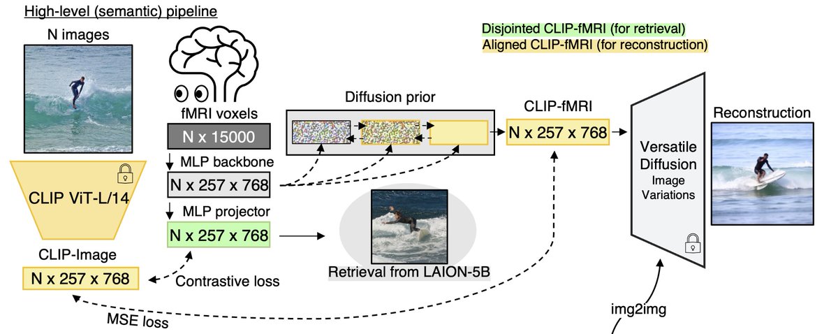 Using this dual pipeline approach, MindEye obtains SOTA results on both high-level and low-level metrics (table of results in preprint)!