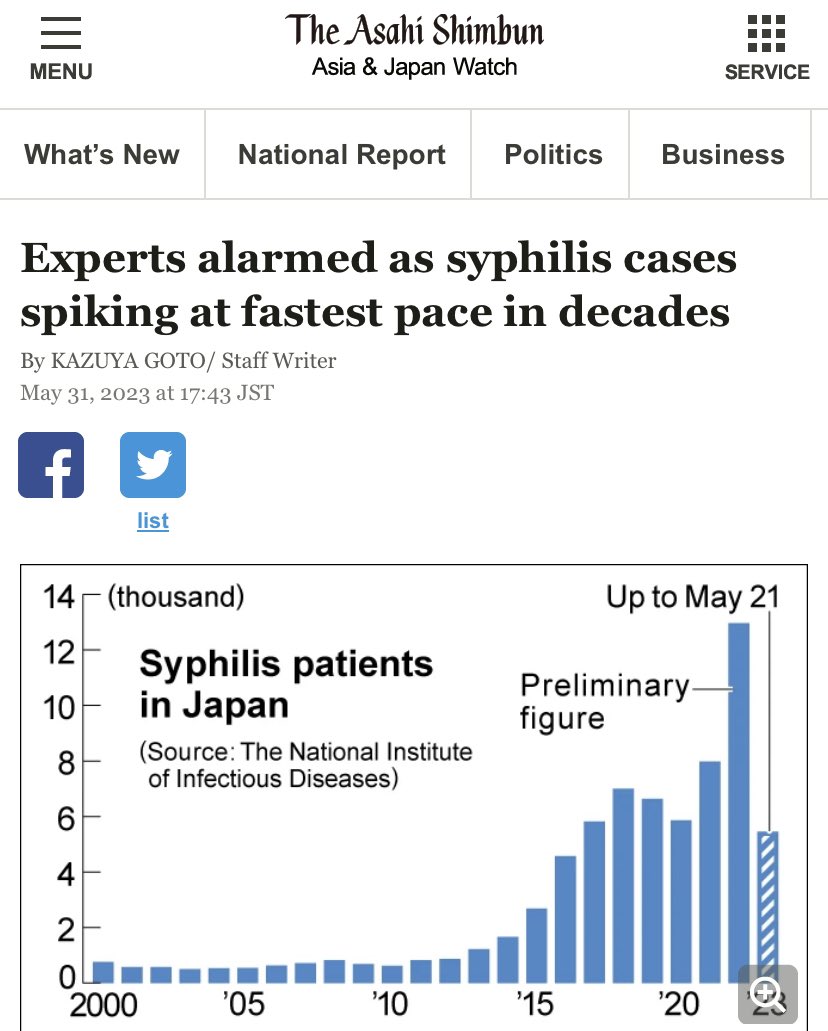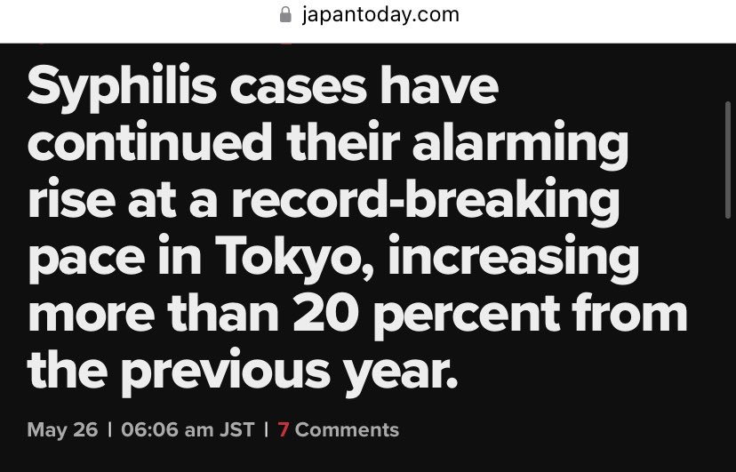 Japan is also seeing record syphilis cases, with cases up 20% over last year. Puzzling and mysterious.