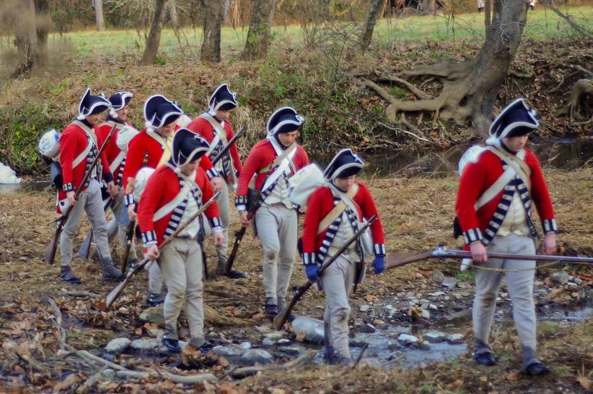 A 🧵on redcoats, reenactors, and revisionist history. Representations of the past are powerful. How did the British army fight, and how can we know? Many people will never read a scholarly book, but they will attend a film, watch a reenactment, or play a game. 1/25