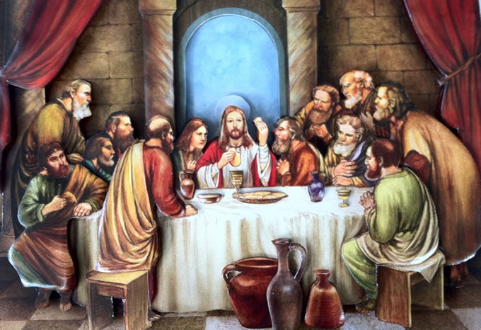 Próximo à Páscoa, Jesus celebra a Última Ceia com seus discípulos, instituindo a Santa Ceia