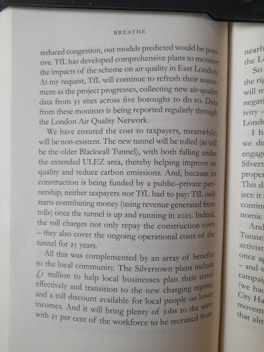 In a recent interview for @marieclaire, @SadiqKhan claims he 'didn't want (#Breathe) to be a book where I'm not being honest'. There are 5 pages in the book justifying his biggest project as Mayor, the Silvertown Tunnel. Nearly every claim in those 5 pages is false.🧵 1/n