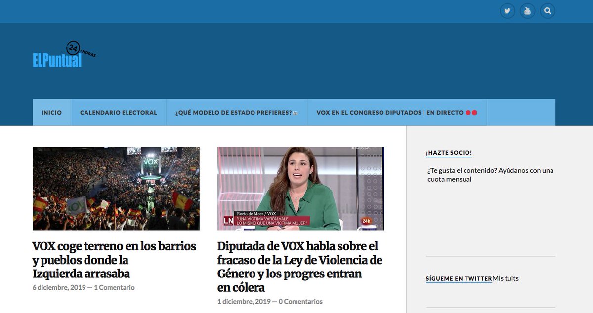 Recupero con Web Back Machine la historia de la web alojada en un Wordpress que "El Puntual" anuncia en su cuenta de Twitter. 2019. Tres años de actividad en las redes.