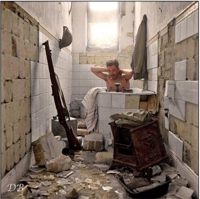 - Soldado británico aprovecha la oportunidad para darse un baño en la ciudad portuaria de Tobruk, Libia. 17 de febrero de 1942.