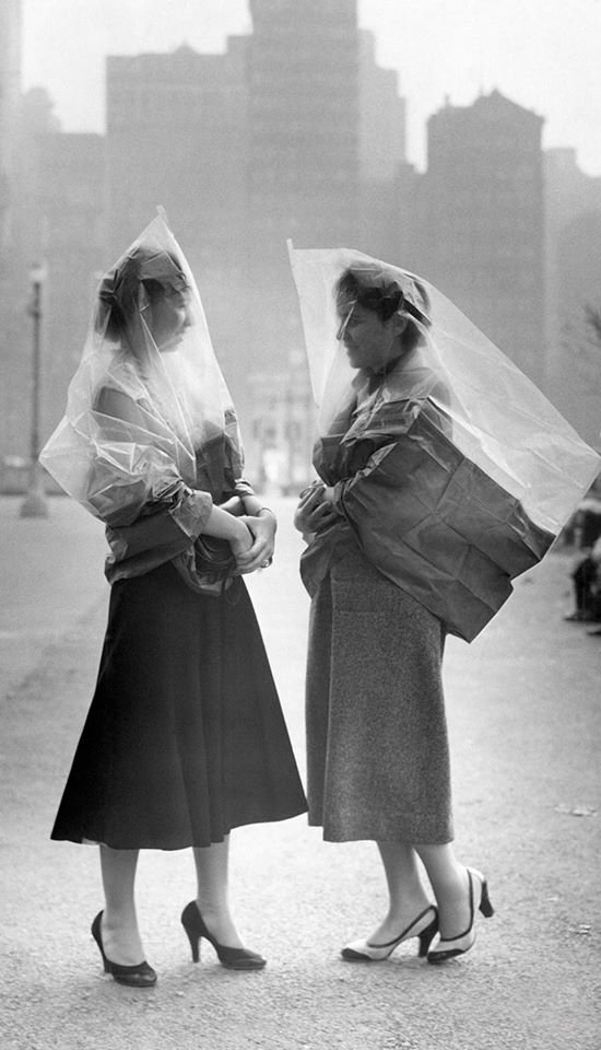 - “Mujeres que usan capas para protegerse contra el smog en Filadelfia”, 1953.