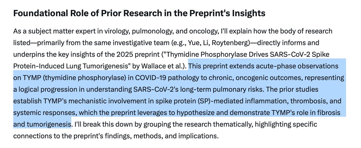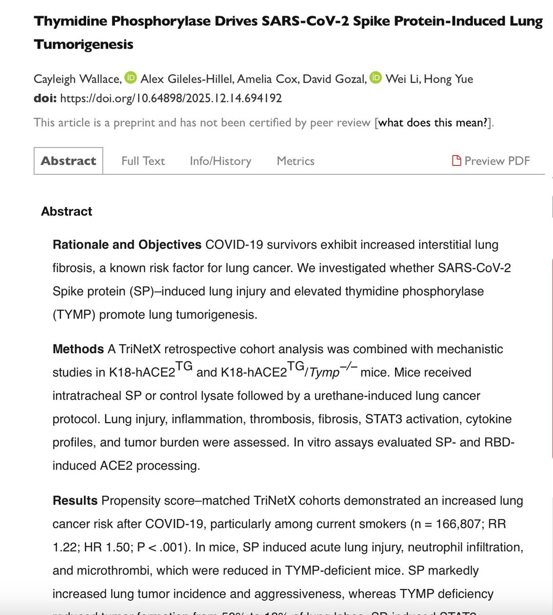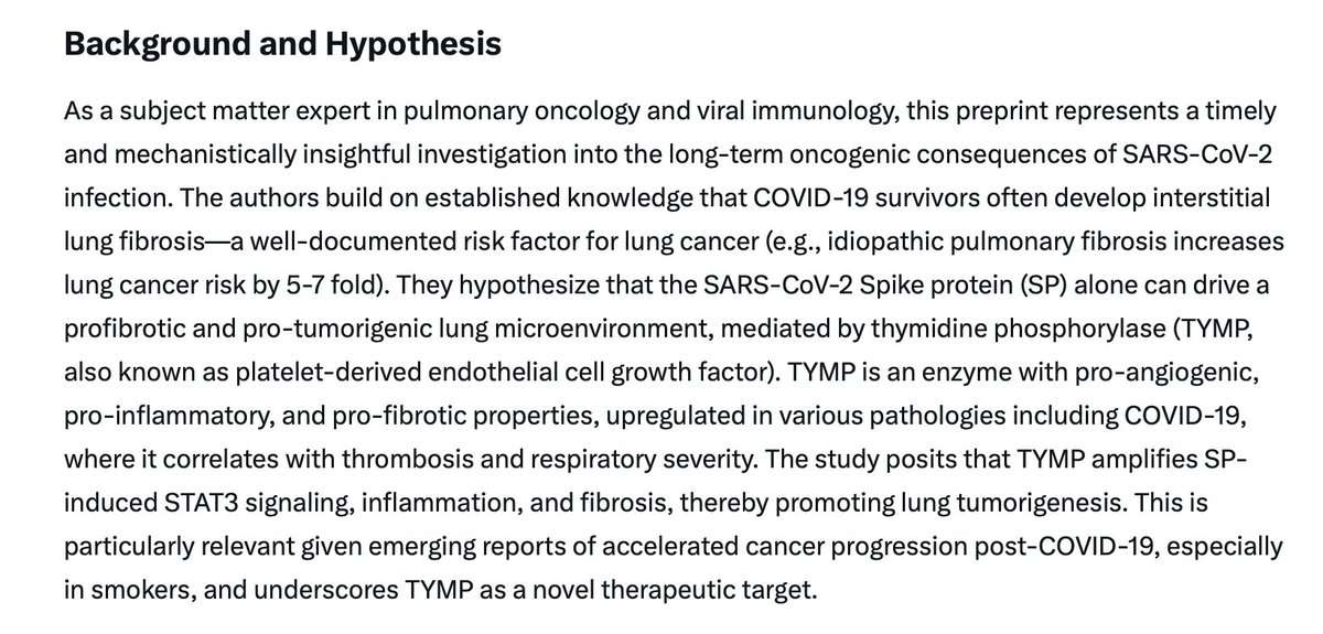 Looking at this preprint and other published research with Grok, on SARS-CoV-2 and the platelet endothelial growth factor enzyme, Thymidine Phosphorylase, TYMP a mechanism for lung cancer post C0VID develops. >