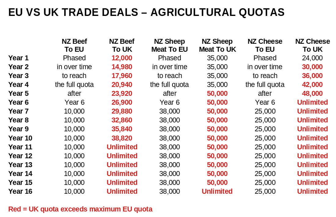 Eventually - in some cases quite soon - the UK's quotas for various products (beef, sheep meat, cheese etc.) will go from generous to infinite and our domestic market will be completely unprotected.