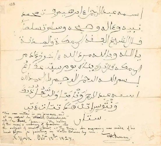 Abdulrahman Ibrahim Ibn Sori was born in 1762 in West Africa. He belonged to one of the most noble and influential families in the region. His father, Emir Ibrahim Sori, was a skilled military leader who successfully established his kingdom by defeating neighbouring tribes