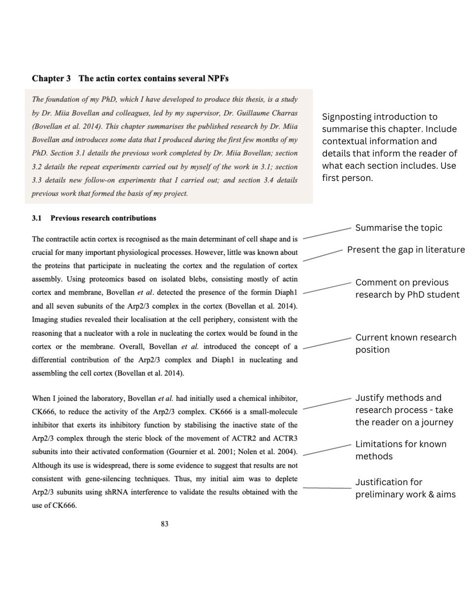 Researchers tend to forget that the PhD thesis is a conversation. You need to regularly signpost and take the reader on an academic learning journey.