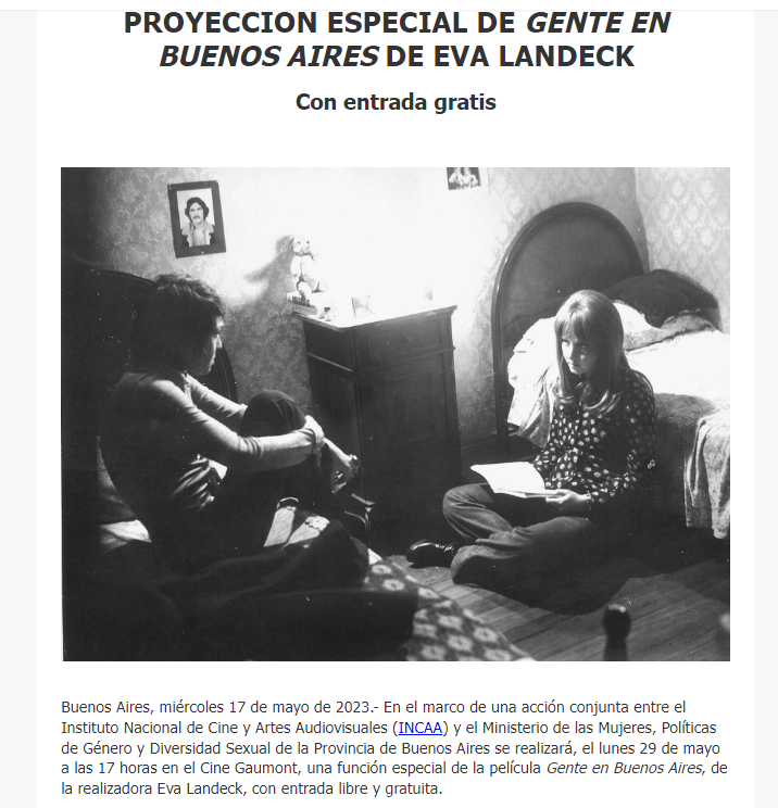 Para quienes estén cerca del Gaumont dentro de un rato, una oportunidad espléndida de ver Gente en Buenos Aires en 35 mm.