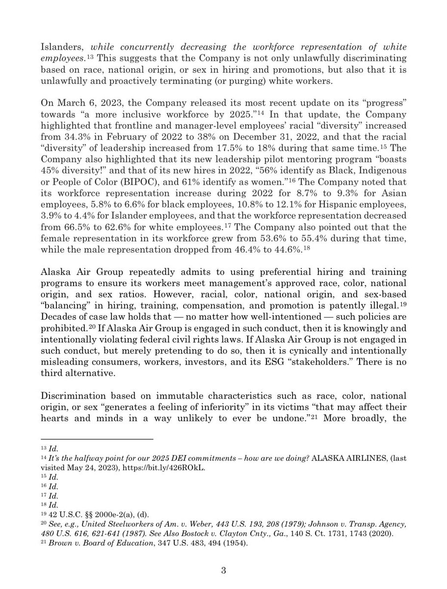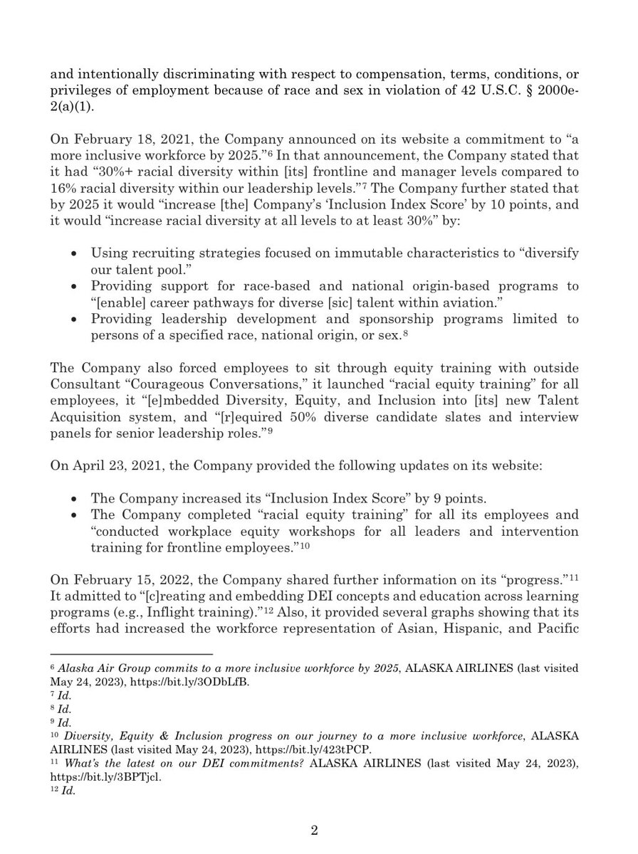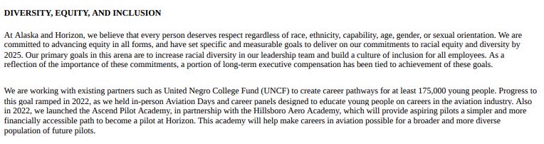 /3 In its most recent 10-K filing, @AlaskaAir states that it is “committed to advancing equity in all forms, and ha[s] set specific and measurable goals to deliver on our commitments to racial equity and diversity by 2025,” and that a primary goal is “to increase racial diversity… twitter.com/i/web/status/1…