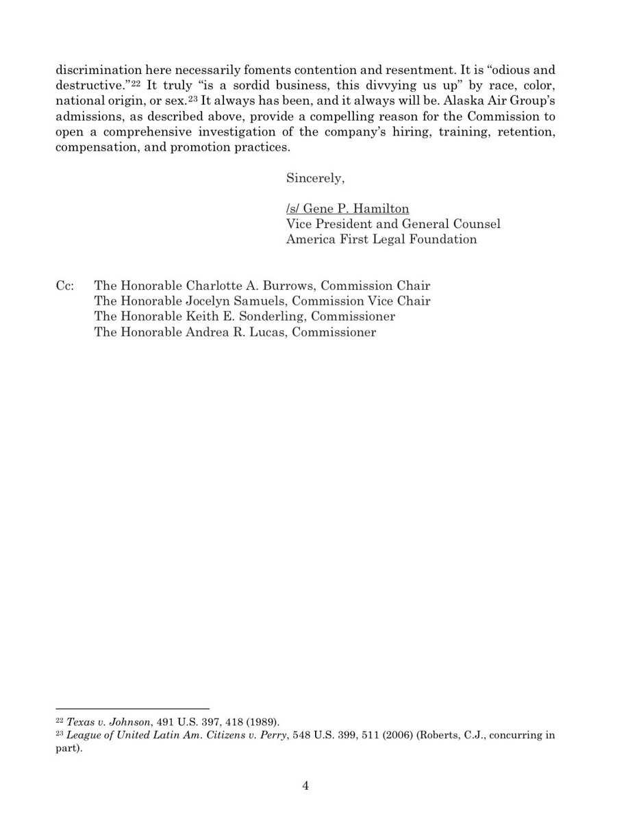 /1 ✈️ THREAD — Today, AFL’s Center for Legal Equality asked the U.S. Equal Employment Opportunity Commission (EEOC) to open a civil rights investigation into @AlaskaAir for engaging in unlawful, racially discriminatory hiring practices.